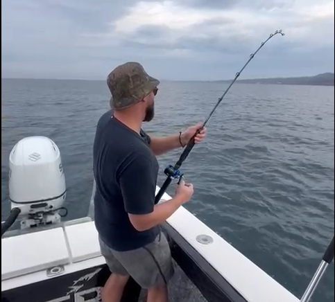 A Panga is an open skiff with an outboard motor. This type of vessel ranges in size from 22 to 27 feet & usually has a simple fighting chair as well as extra seating for up to 2/3 or 4 passengers at maximum and just one crew member (Captain). Pangas regularly have a “porta potty”, rather than an enclosed toilet & some shade. A regular trip is for 5 hours & usually close to shore, though you may travel anywhere from 1 to 10 miles parallel to the coast, depending on the fishing season.